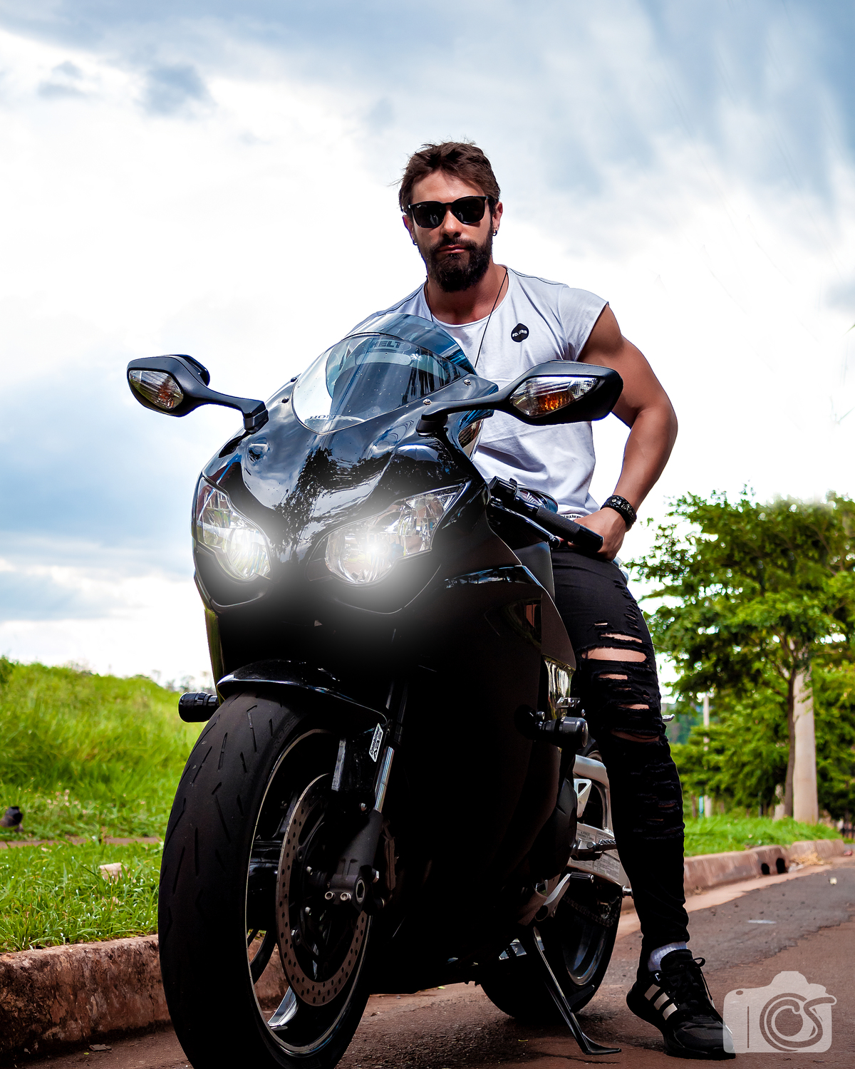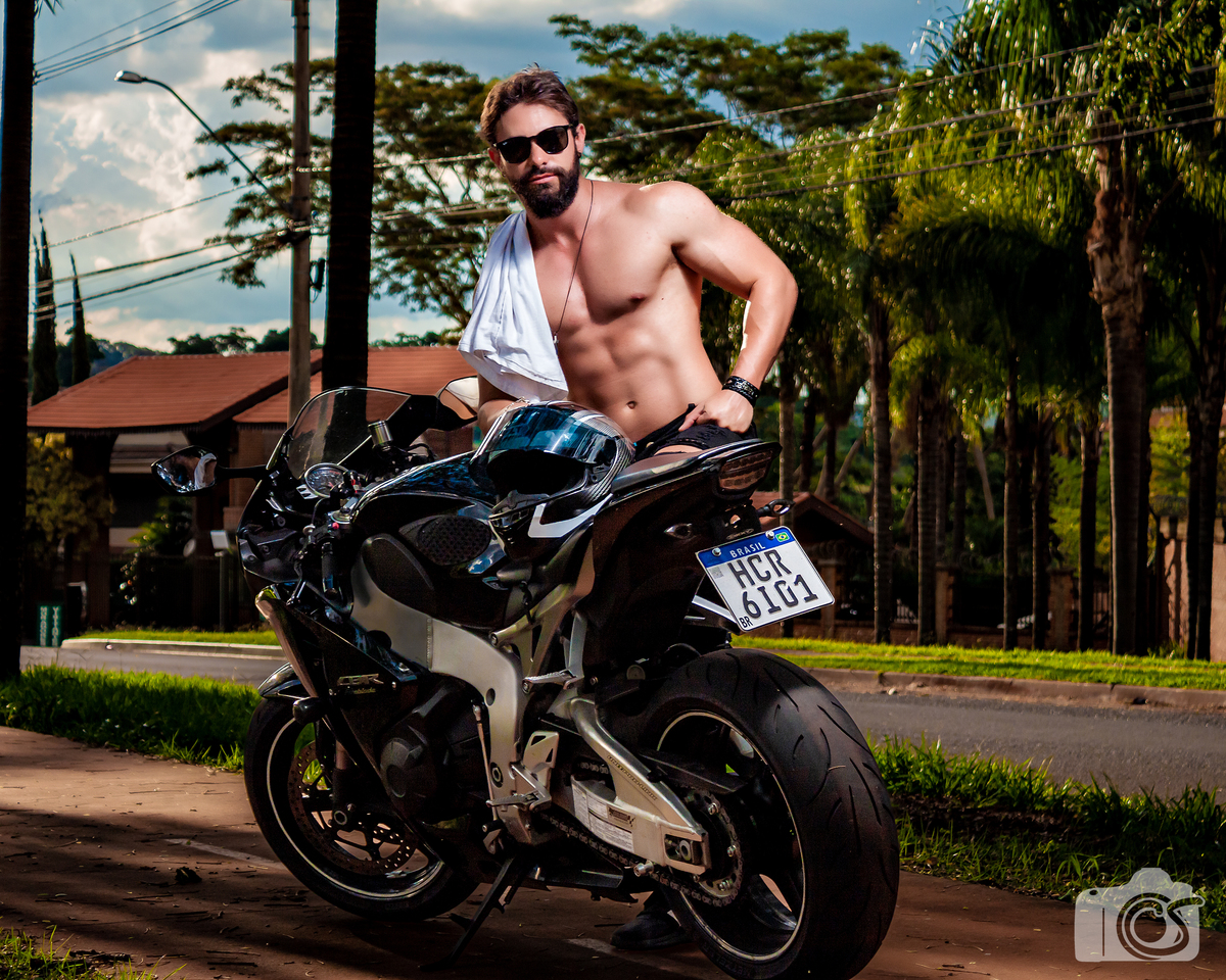Um Super Ensaio de Moto a céu aberto e uma iluminação de rádio flash, proporcionando um belíssimo resultado!